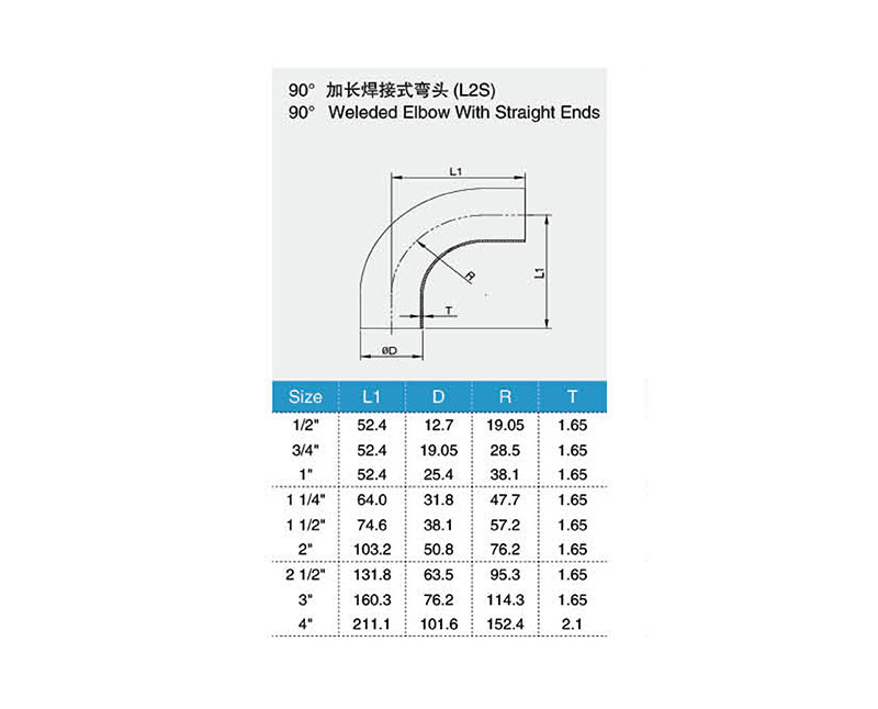 90°加长焊接式弯头(L2S)